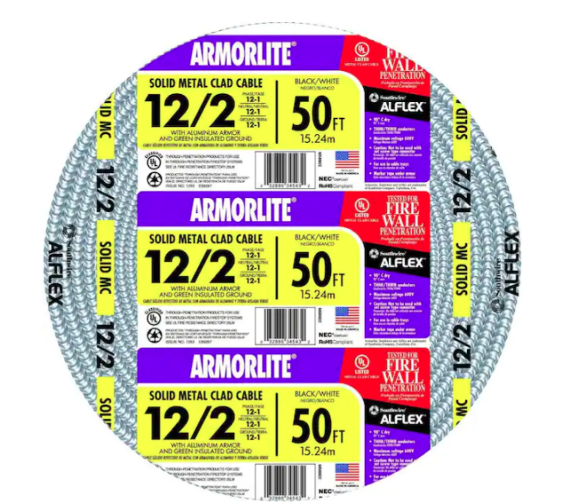 12/2 x 50 ft. Solid CU MC (Metal Clad) Armorlite Cable - 9368980