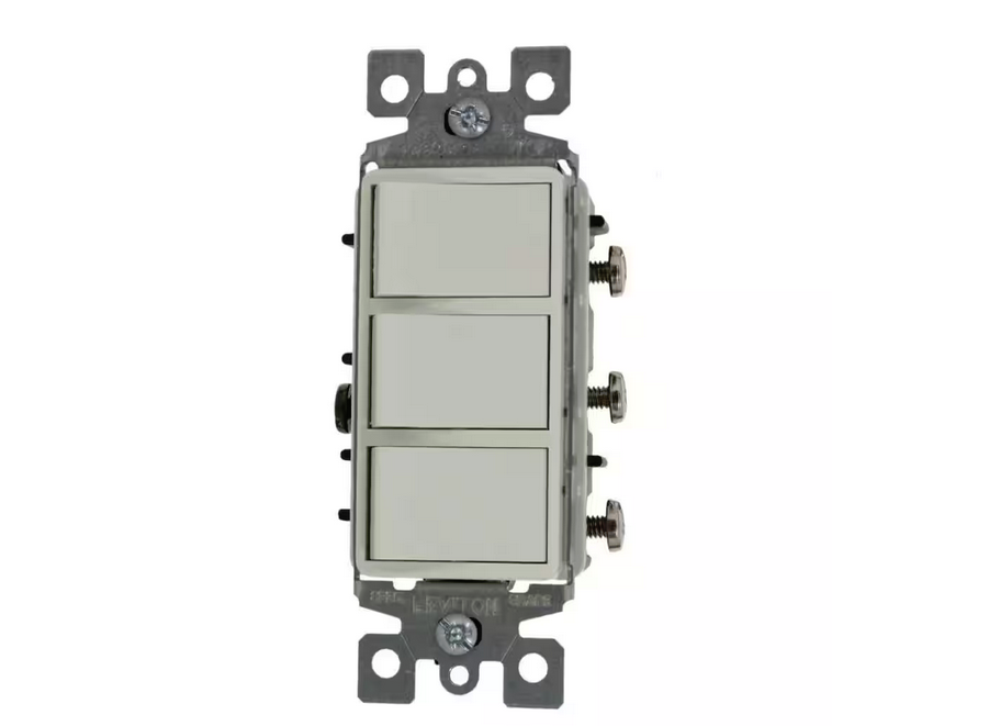 15-Amp Commercial Grade Combination Three Single Pole Grounding Rocker Switches, White