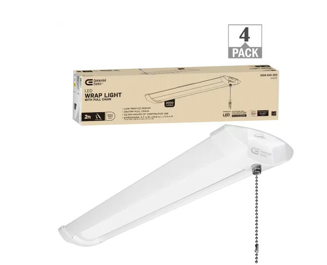 2 ft. 100- Watt Equivalent 2000 Lumens Integrated LED White Shop Light with Pull Chain 4000K Bright White (4-Pack) - 91010433439