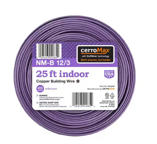 25 ft. 12/3 Purple Solid CerroMax SLiPWire Copper NM-B Wire - 91010898445