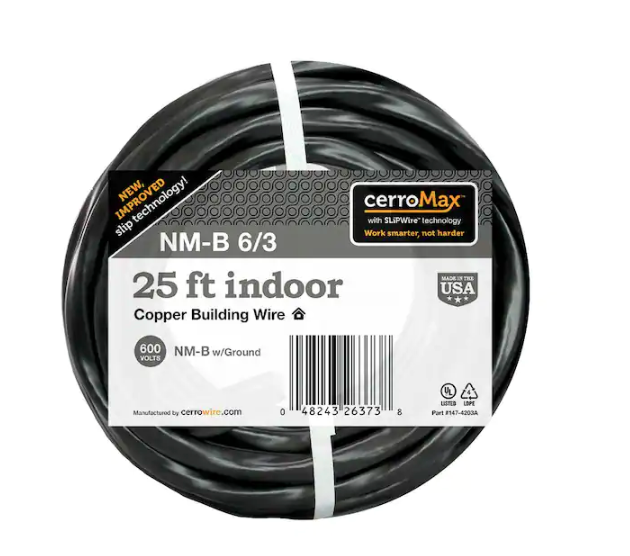 25 ft. 6/3 Black Stranded CerroMax SLiPWire Copper NM-B Wire