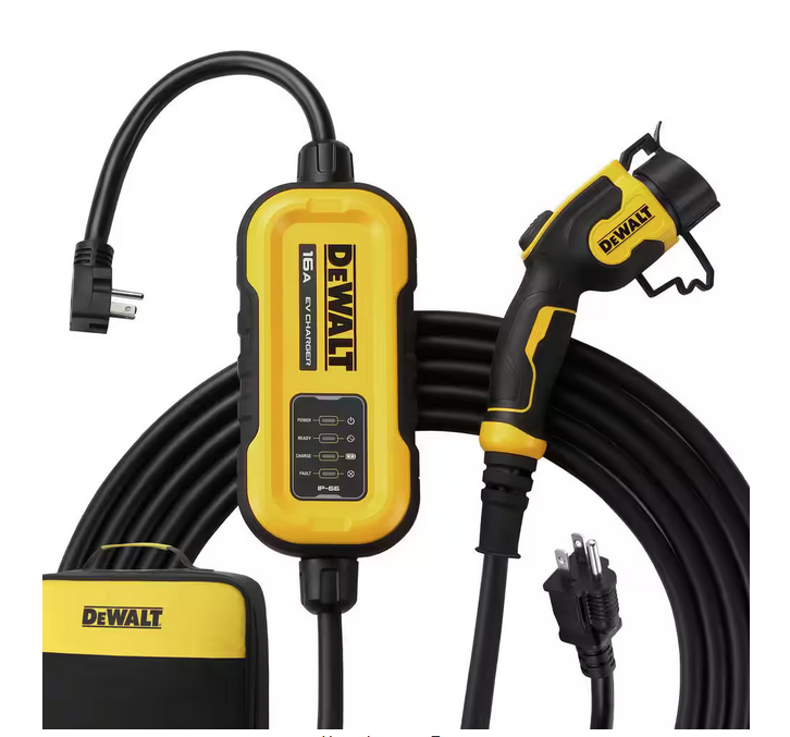 - Power on the Go: The DEWALT portable EV charger is equipped with NEMA 6-20 plug with included interchangeable NEMA 5-15 adapter. Ready to use, no installation required. Charge anywhere, the NEMA 5-15 outlet is widely compatible, making charging convenient wherever you are, with the included travel bag, your portable EV charger can be safely stored.