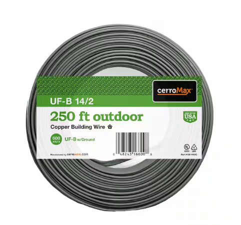 250 ft. 14/2 Gray Solid CerroMax Copper UF-B Cable with Ground Wire
