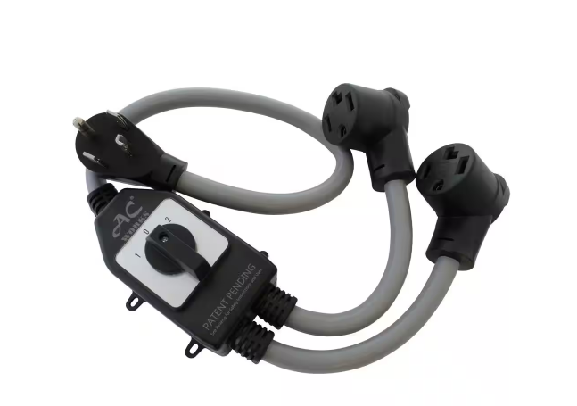 30 Amp 125-Volt/250-Volt NEMA 14-30 4-Prong Dryer Plug to 2 NEMA 14-30 4-Prong Dryer Connections with Switch - 91006496588
