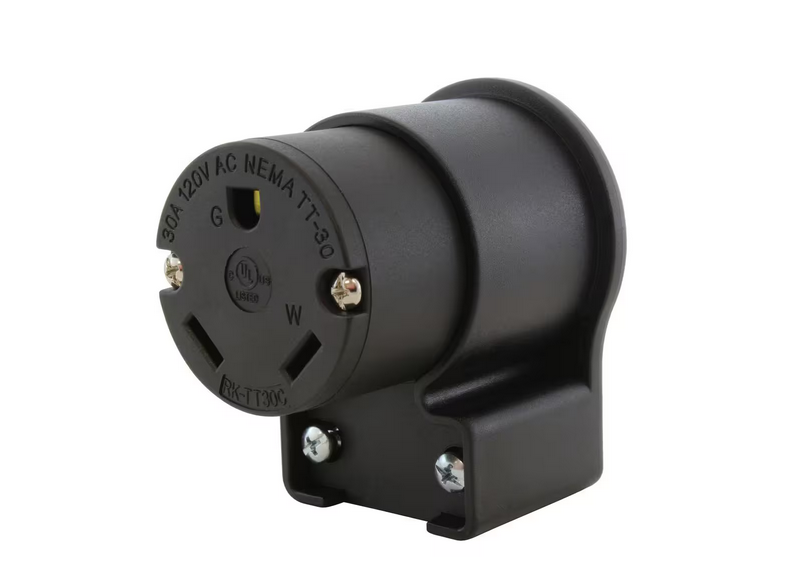 30 Amp 3-Prong RV Travel Trailer NEMA TT-30R Elbow-Style Assembly Replacement Connector - 91010692123