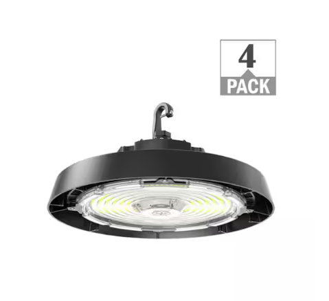 400-Watt Equivalent 11 in. Round Integrated LED Black High Bay Light 8100-15000 Lumens Adjustable CCT 120-277V (4-Pack) - 91010331255