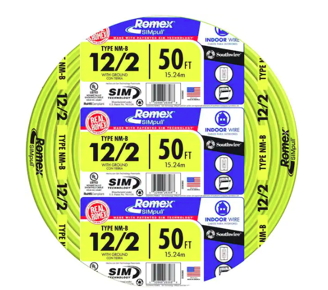 50 ft. 12/2 Solid Romex SIMpull CU NM-B W/G Wire - 9372648
