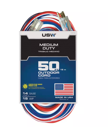 50 ft. 14/3 Medium Duty Indoor/Outdoor Red White and Blue Lighted Extension Cord - 91005209955
