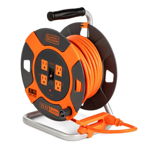 - Power where you need it: make sure you have plenty of outlets while working outside with this extension cord reel with four outlets from Black + Decker, this 75 ft. electric extension cord is CSA certified and has an on/off switch and light indicator