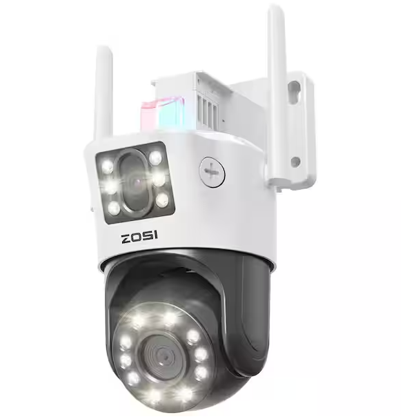 - Dual-lens Wi-Fi PTZ camera, ZOSI 2.5K 4MP Wi-Fi pan and tilt camera merges a 4MP telephoto lens with an 8 x electronic zoom-capable wide-angle lens for enhanced clarity in capturing crucial details from a distance, the 8 mm telephoto lens captures intricate details, while the 2.8 mm wide-angle lens provides a 355° panoramic view on 1 screen, enjoy 3 night vision modes black and white, full-color, smart night vision - with a 30m range for security in the dark