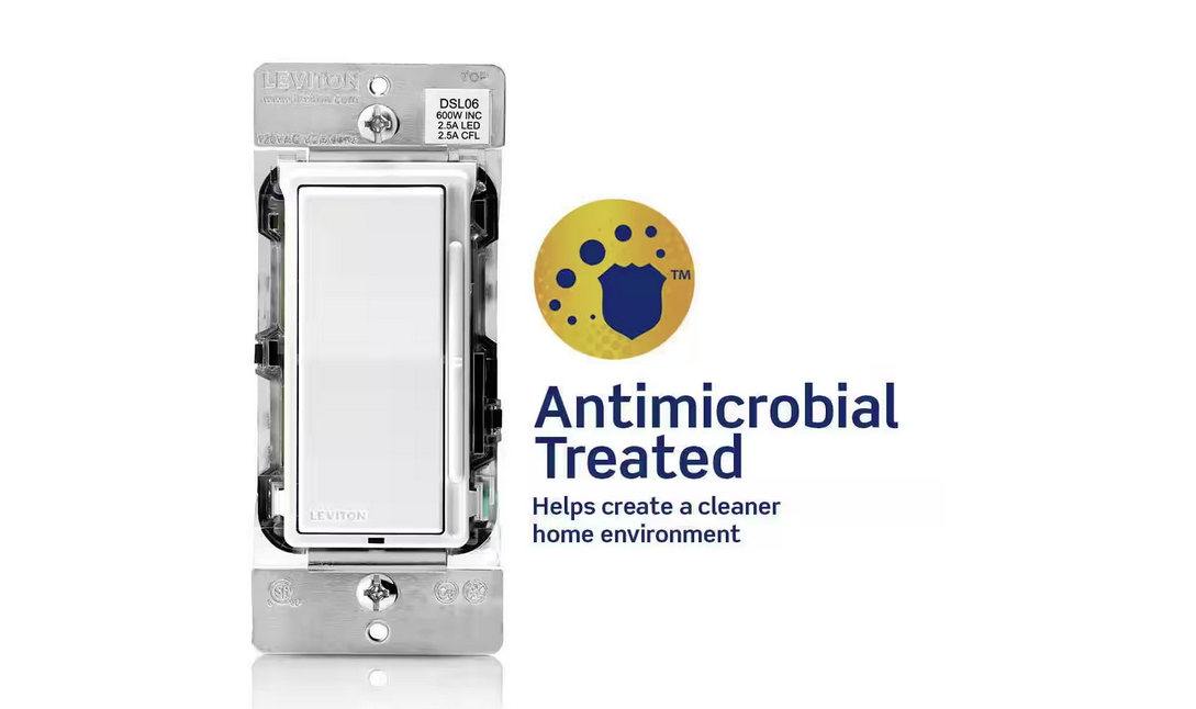 Decora 600-Watt Single-Pole/3-Way Dimmer Universal Rocker Antimicrobial Slide, White/Light Almond - 91007512367