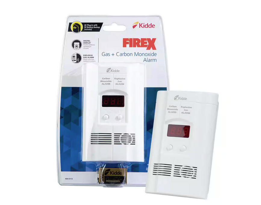 Firex Plug-in Carbon Monoxide, Propane, Natural and Explosive Gas Detector, 9-Volt Battery Backup & Digital Display - 9791898