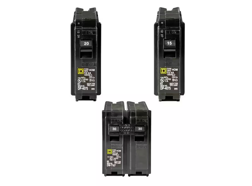 Homeline 1-20 and 1-15 Amp Single-Pole, and 1-30 Amp 2-Pole Circuit Breakers (3-pack) - 91005370706