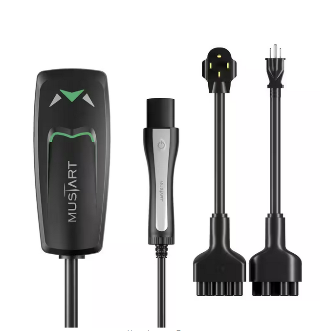 - Flexible charging - it comes with interchangeable plugs - one for regular household outlets (NEMA 5-15) and another for high-power outlets (NEMA 14-50) so, whether you're at home or somewhere with a more powerful socket, this charger has got you covered