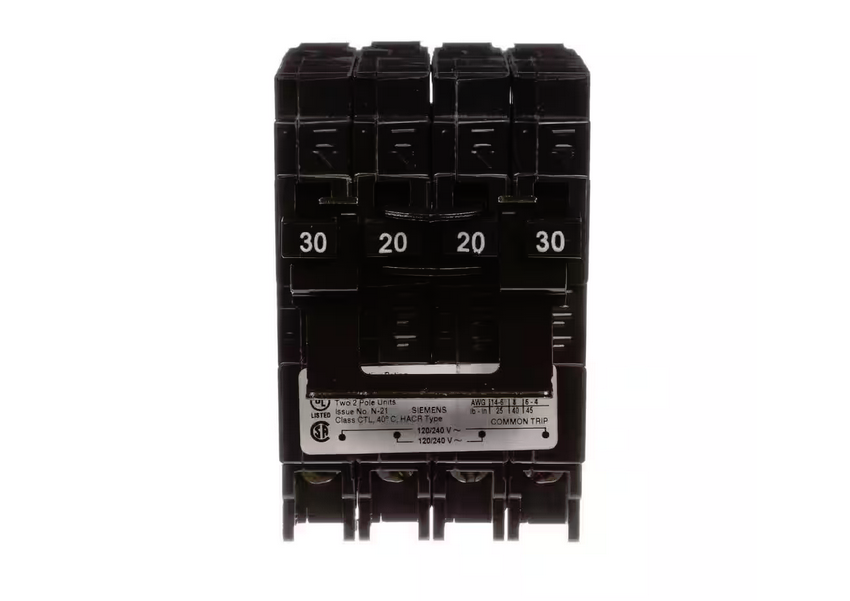 Quadplex Two Double Pole 30 Amp Outside Two Double Pole 20 Amp Inside Circuit Breaker - 9404839