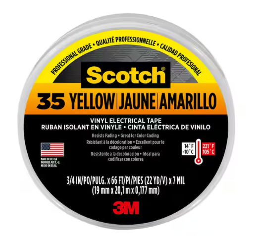 Scotch 3/4 in. x 66 ft. x 0.007 in. #35 Electrical Tape, Yellow (Case of 5) - 91003994326