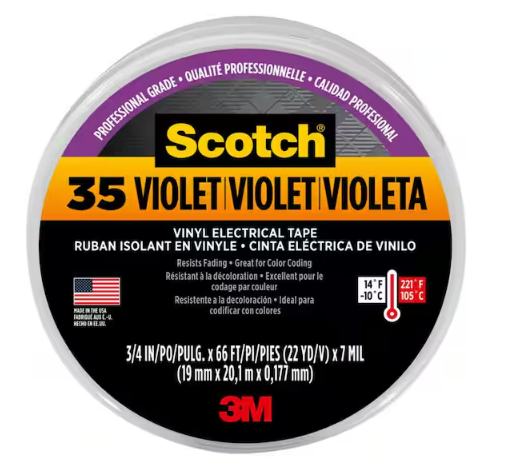Scotch 3/4 in. x 66 ft. x 0.007 in. #35 Electrical Vinyl Tape, Violet (Case of 5) - 91003964006