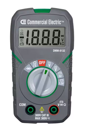 - Multimeter includes test leads, 2-alkaline 1.5V AAA batteries, velcro storage strap and user manual
