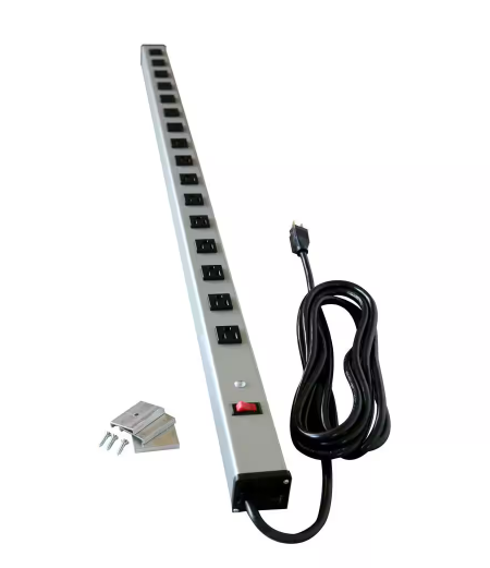- Power strip features sixteen 15A receptacles spaced 2-1/2 in. on center