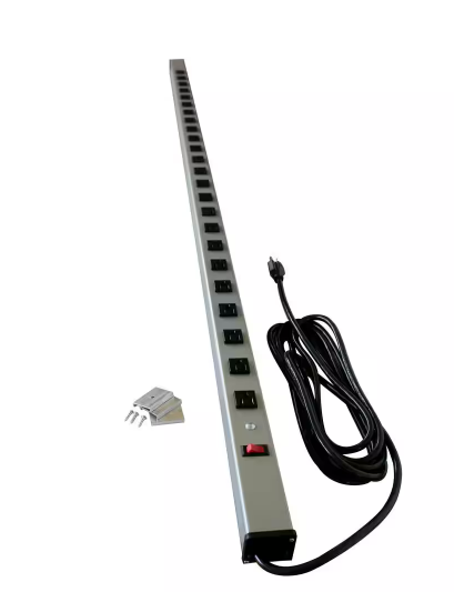 - Power strip features twelve 15A receptacles spaced 2-1/2 in. on center, leaving room for bulky transformers and adapters