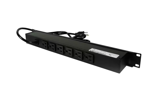 - Power strip features six 15A receptacles located in the rear and spaced 1-1/2 in. on center